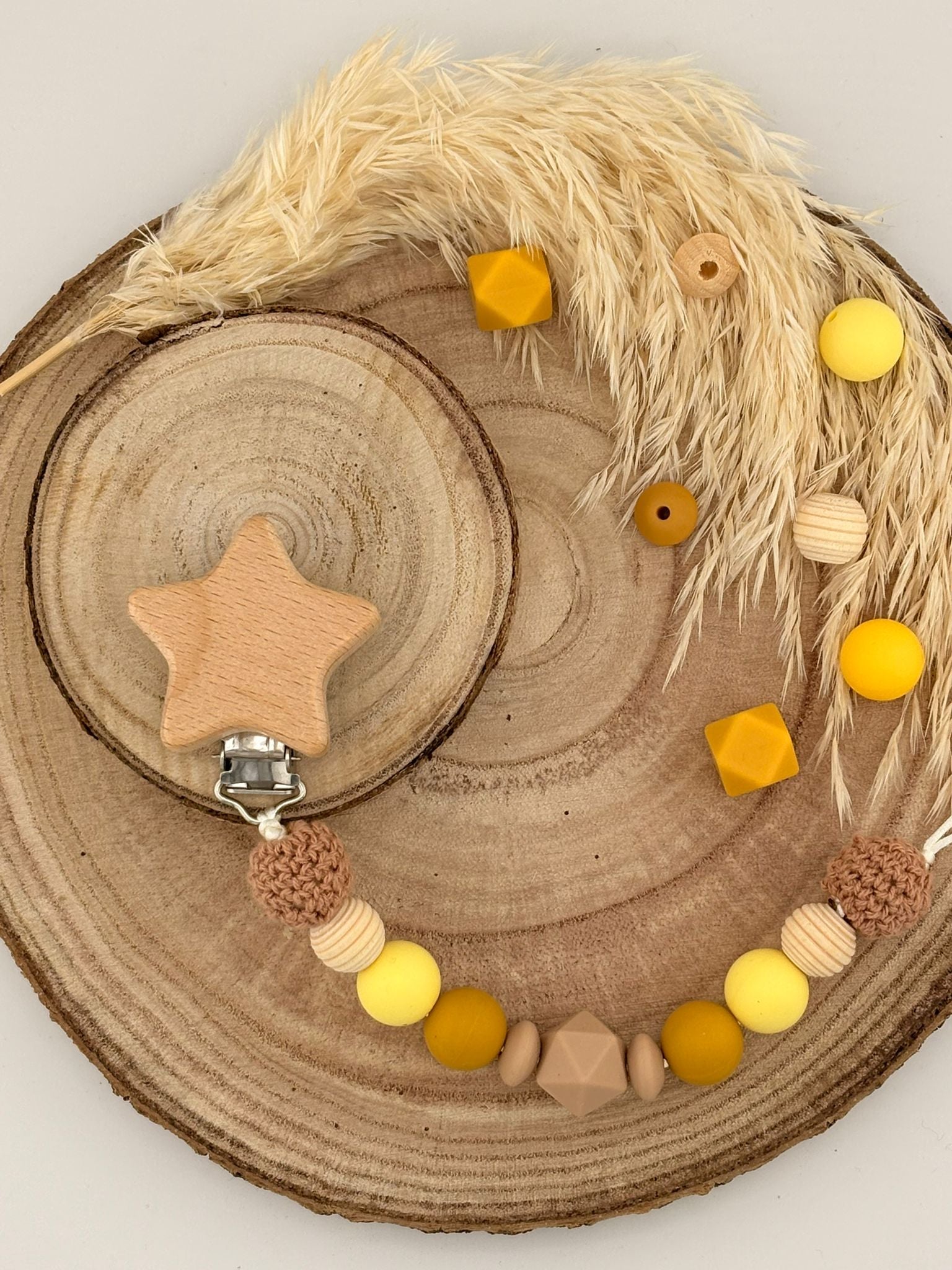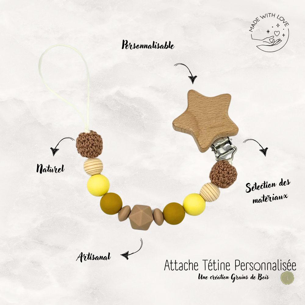Confectionnée à la main dans nos ateliers, chaque attache tétine est une pièce unique, pensée pour les tout-petits et leurs parents.