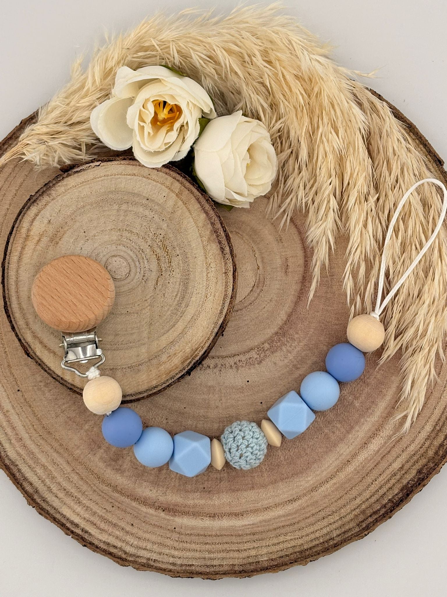 Confectionnée à la main dans nos ateliers, chaque attache tétine est une pièce unique, pensée pour les tout-petits et leurs parents.