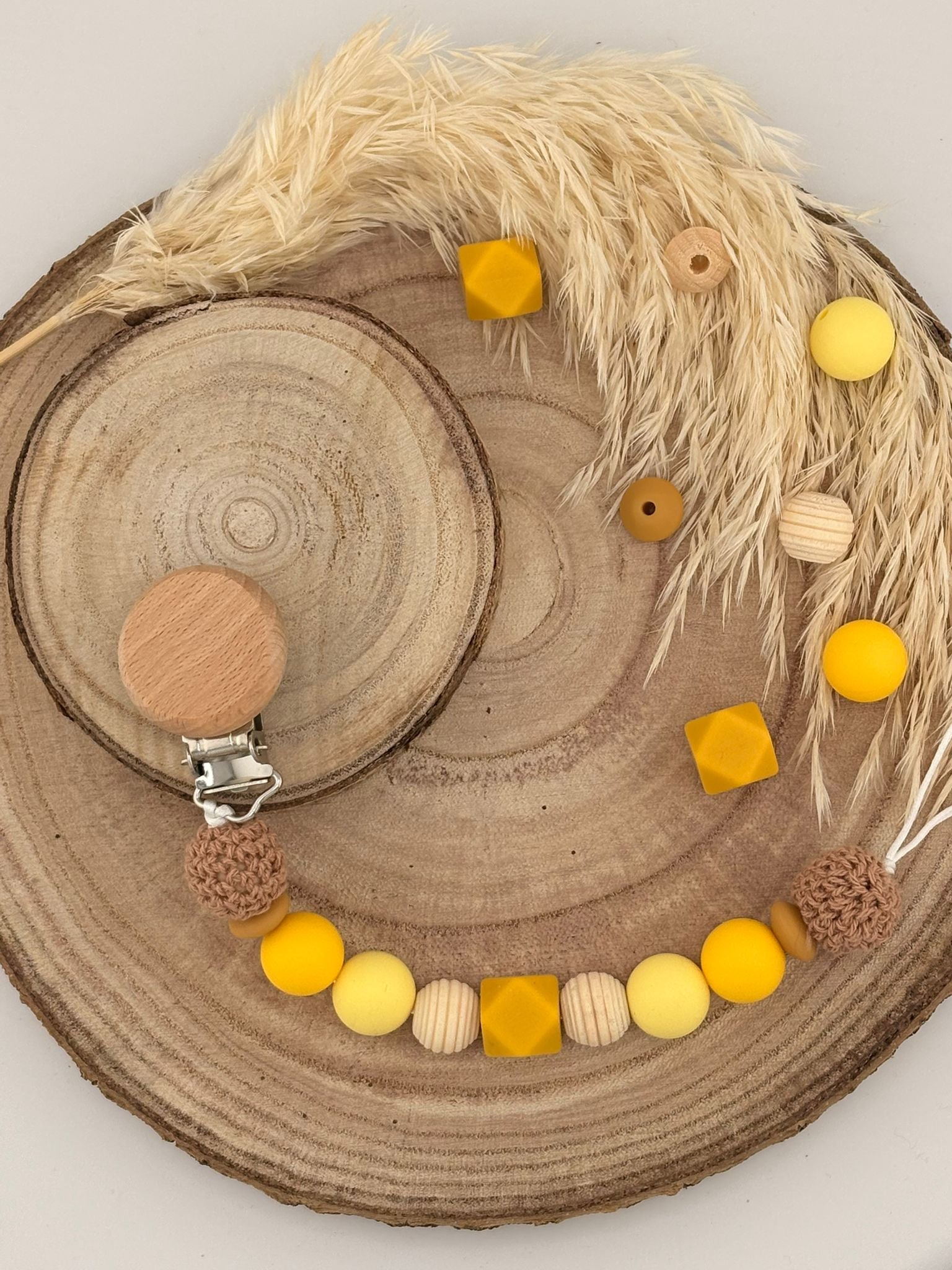 Confectionnée à la main dans nos ateliers, chaque attache tétine est une pièce unique, pensée pour les tout-petits et leurs parents.