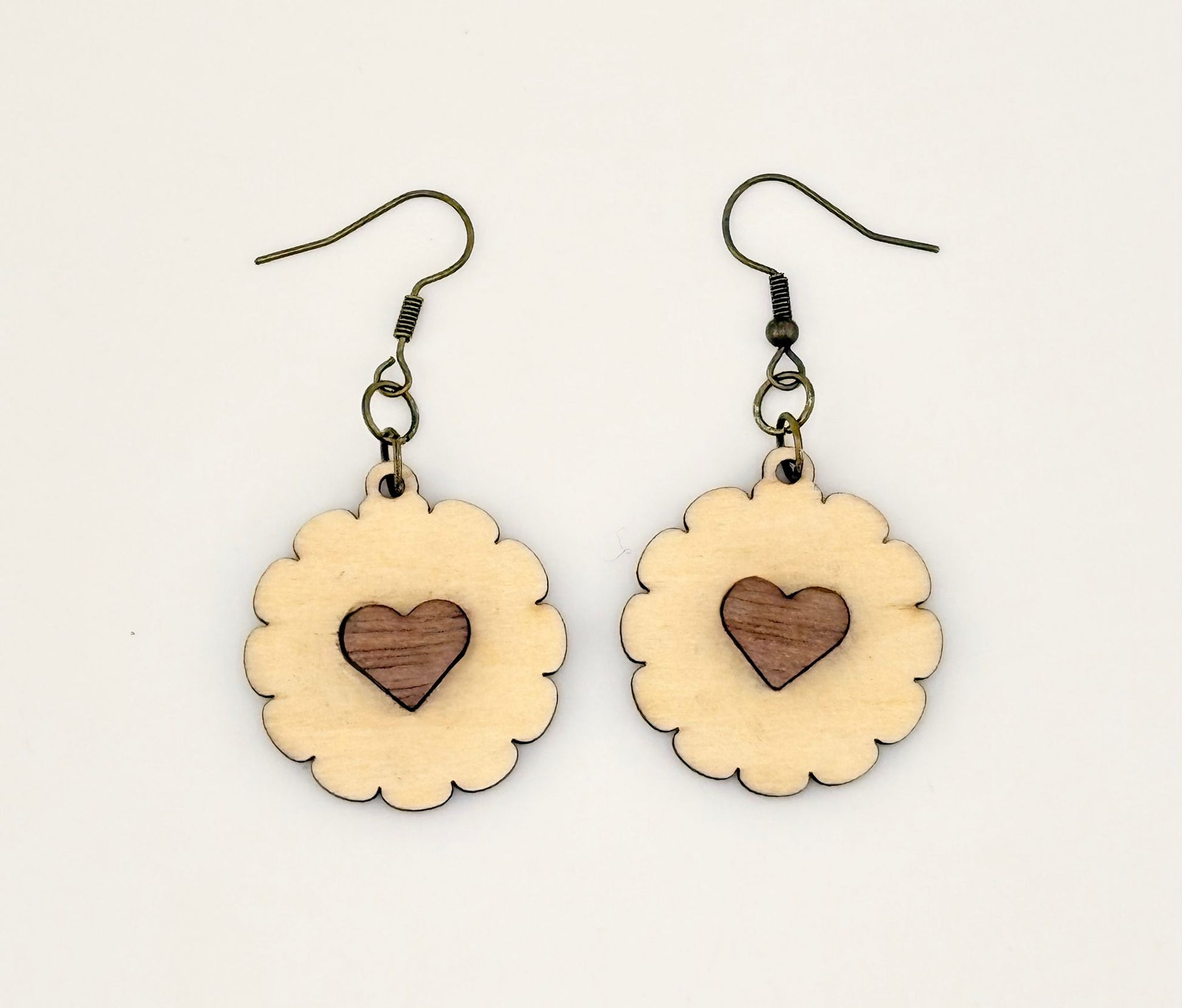 Boucles d’oreilles Biscuits bouleau + coeur bouleau – Collection Saint-Valentin ❤️🌿✨