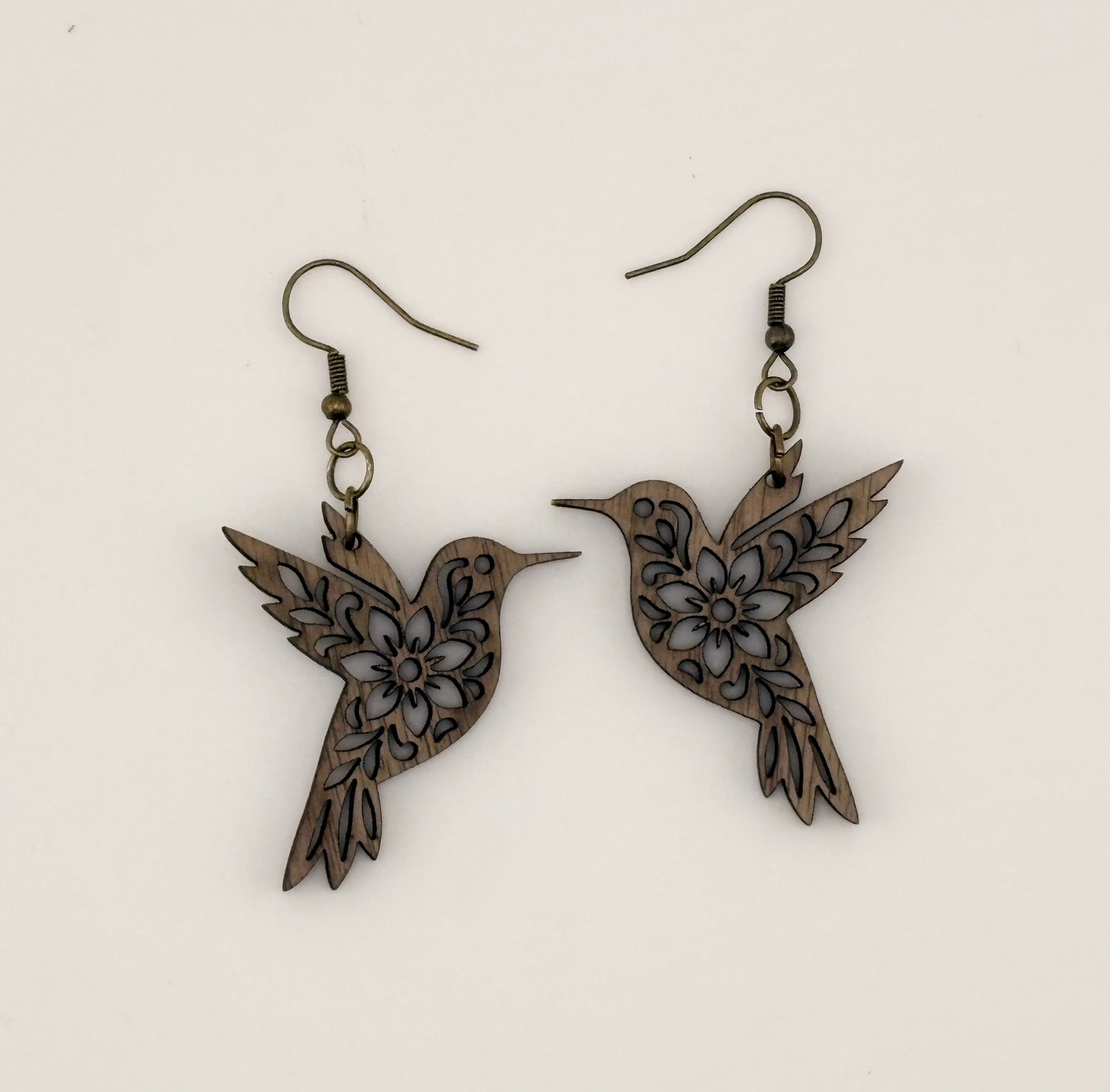 Boucles d’oreilles colibri Fleurs des îles en noyer – Légèreté et poésie 🌿🐦✨