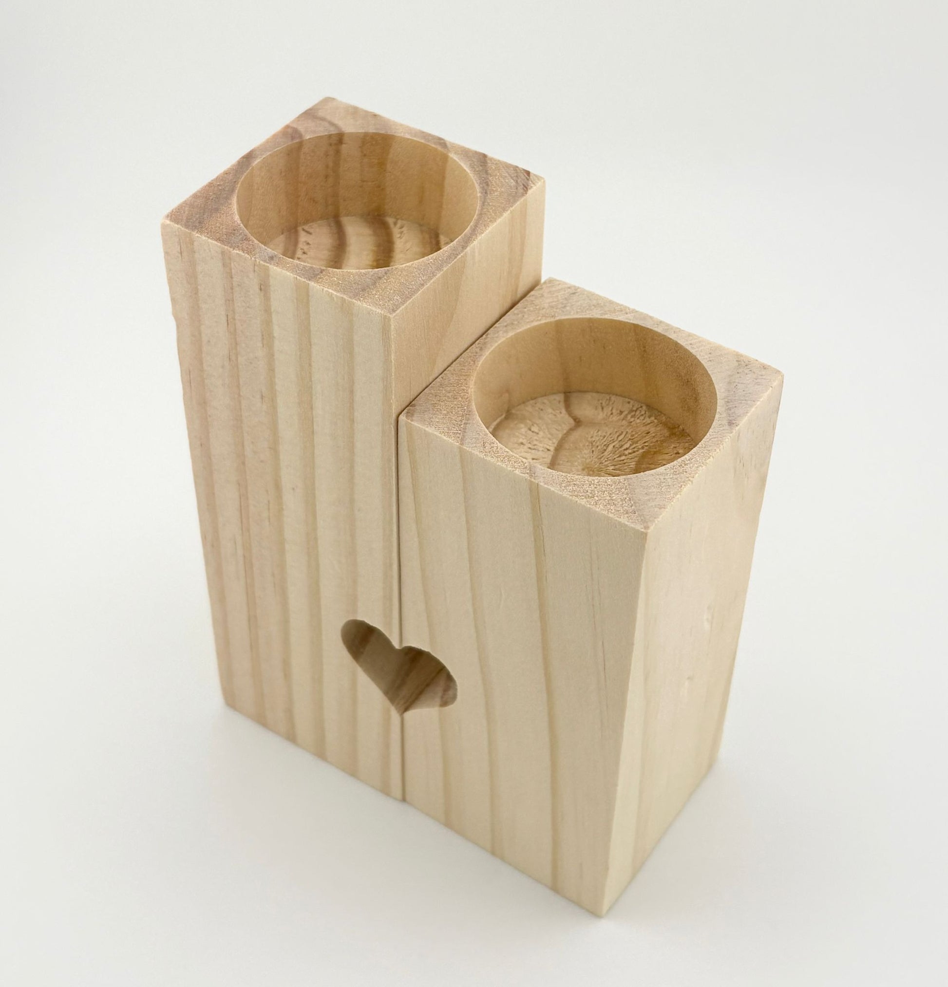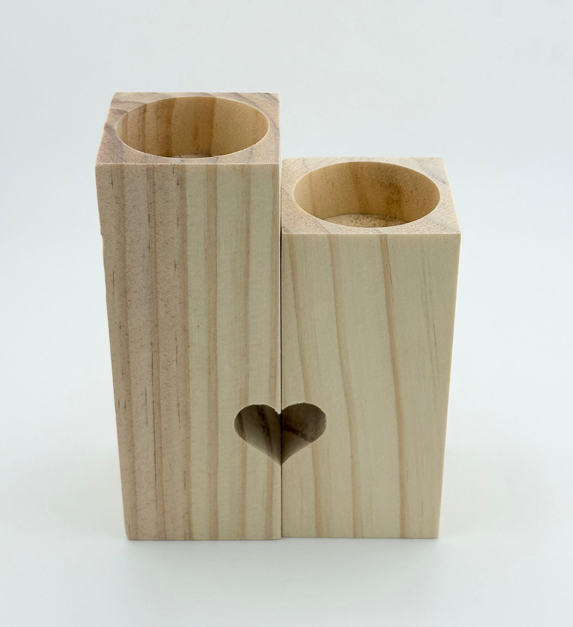 Fait main avec amour dans nos ateliers, cet ensemble de bougeoirs en bois naturel forme un cœur uni quand les deux pièces sont réunies — un symbole fort d’amour et de complicité.
