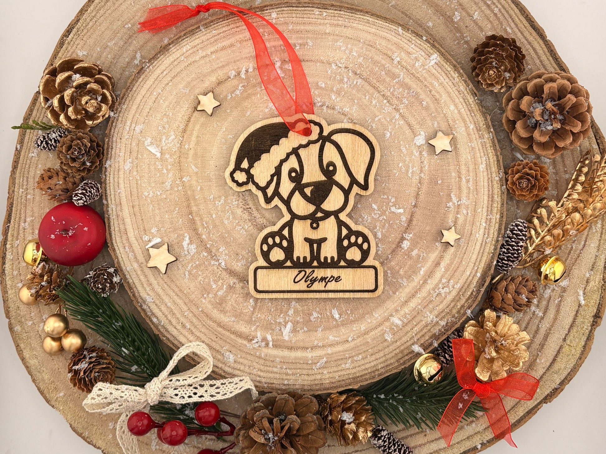 Faites main avec amour dans nos ateliers, nos boules de Noël en bois rendent hommage à vos compagnons à quatre pattes.