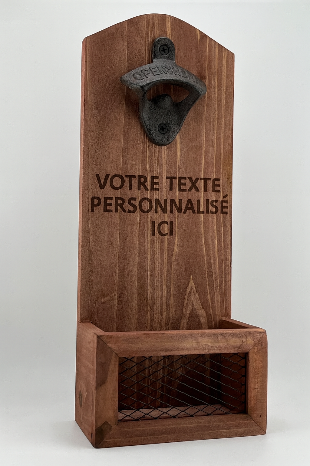 Fabriqué avec soin dans nos ateliers, ce décapsuleur mural en bois allie fonctionnalité et style.