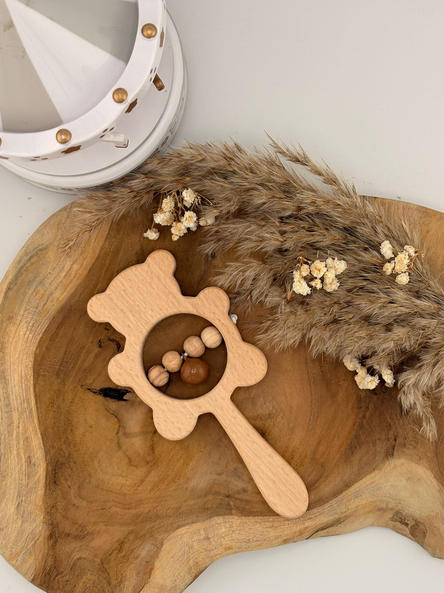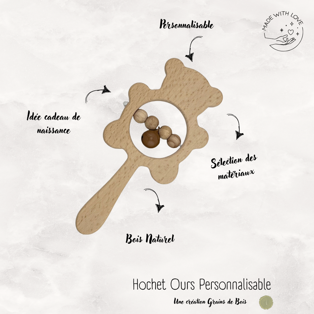 Hochet en bois personnalisable – Douceur, éveil et sécurité pour bébé 🌿🍼