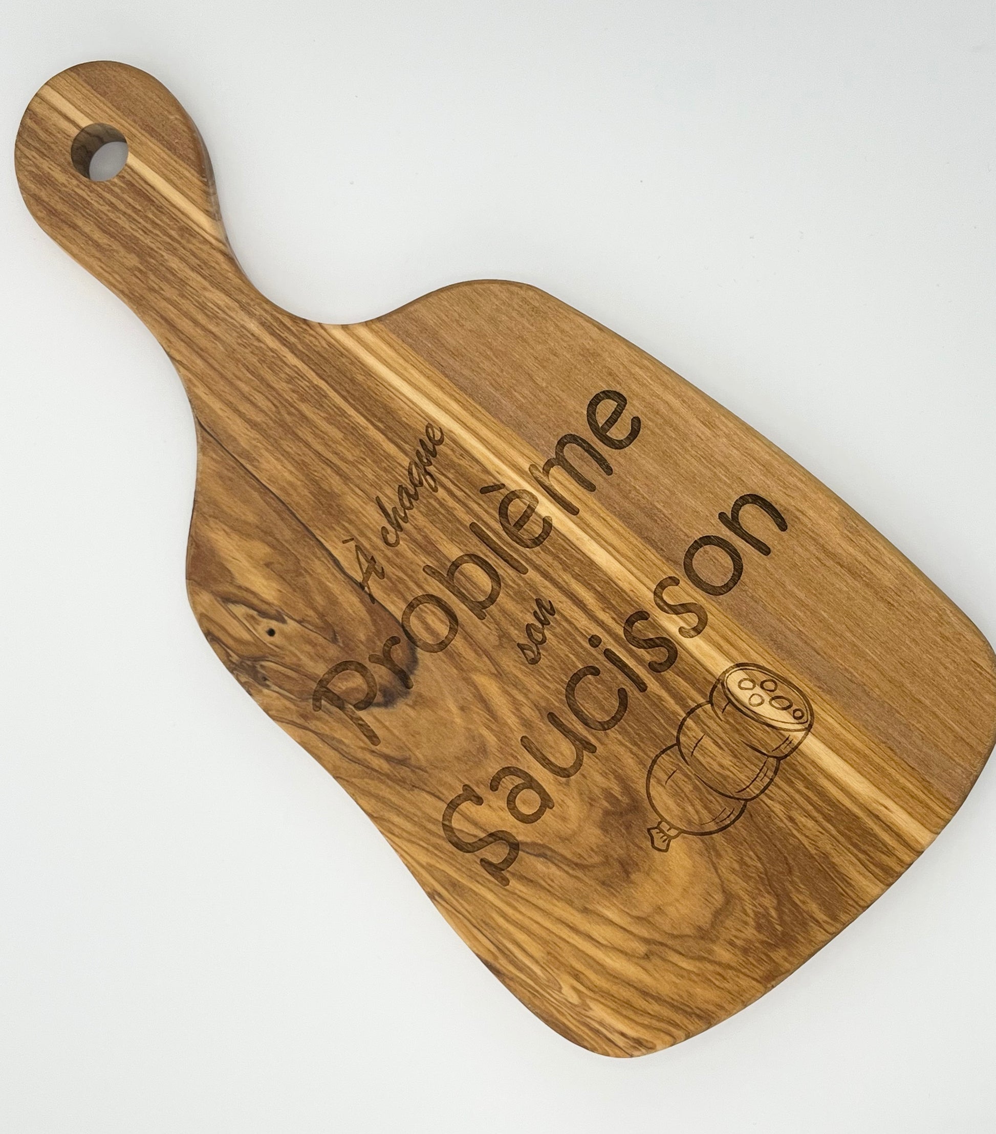 Fait main avec amour dans nos ateliers, chaque planche à découper en bois est unique par sa forme et sa citation gravée avec soin.